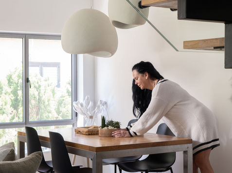 האור הטבעי משחק תפקיד מרכזי, משתלב בעדינות עם הפשטות של הריהוט, ומדגיש את תחושת הזרימה בין הפנים לחוץ ולהיפך.